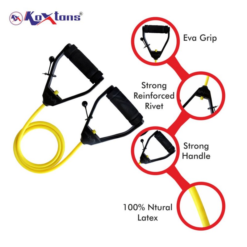 The Koxtons Fitness Tube Light (Yellow) is designed for those seeking a light resistance workout, making it perfect for beginners, rehabilitation exercises, and warm-up routines. Crafted from high-quality natural latex, this resistance tube ensures durability, elasticity, and consistent performance. Its ergonomic foam handles provide a comfortable and secure grip, preventing slippage during exercises.