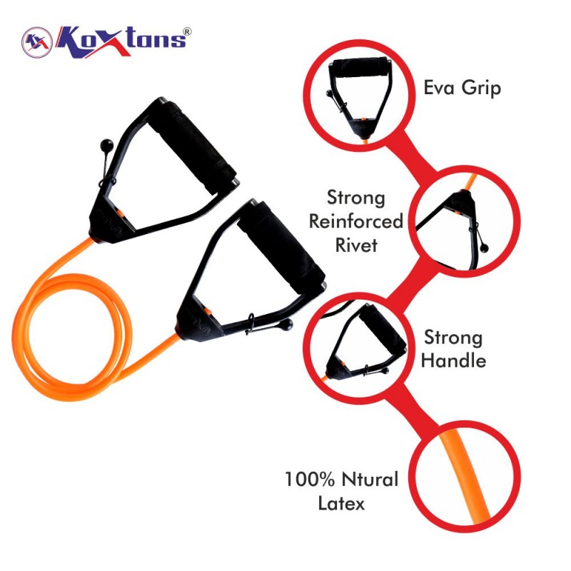 The Koxtons Fitness Tube Medium (Orange) is designed to enhance your strength, endurance, and flexibility training. Perfect for resistance workouts, this medium-resistance tube provides the right amount of challenge for both beginners and experienced fitness enthusiasts. Crafted from premium, durable latex, it ensures long-lasting elasticity and performance. Its ergonomic handles offer a comfortable grip, making it suitable for a variety of exercises such as squats, chest presses, rows, and stretching routines. Lightweight and portable, you can use it at home, in the gym, or even while traveling for an effective workout anywhere.